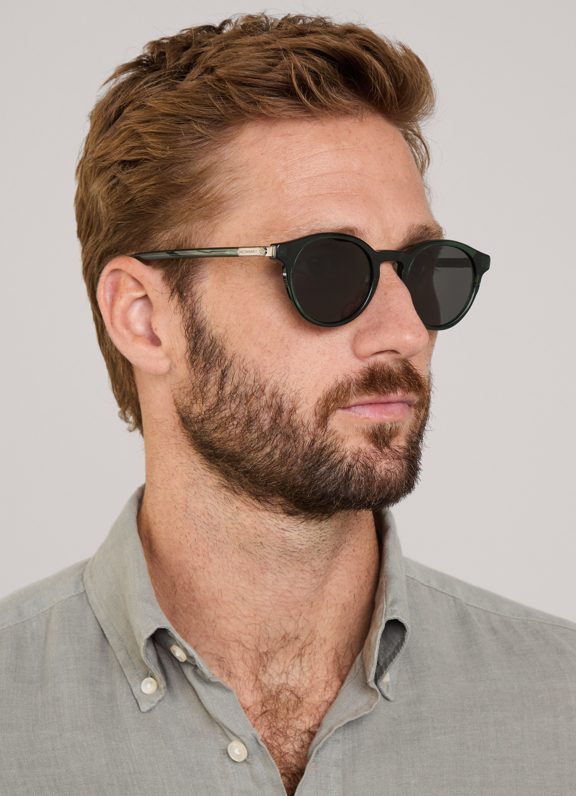 - Monture en acétate de couleur verte légèrement translucide.