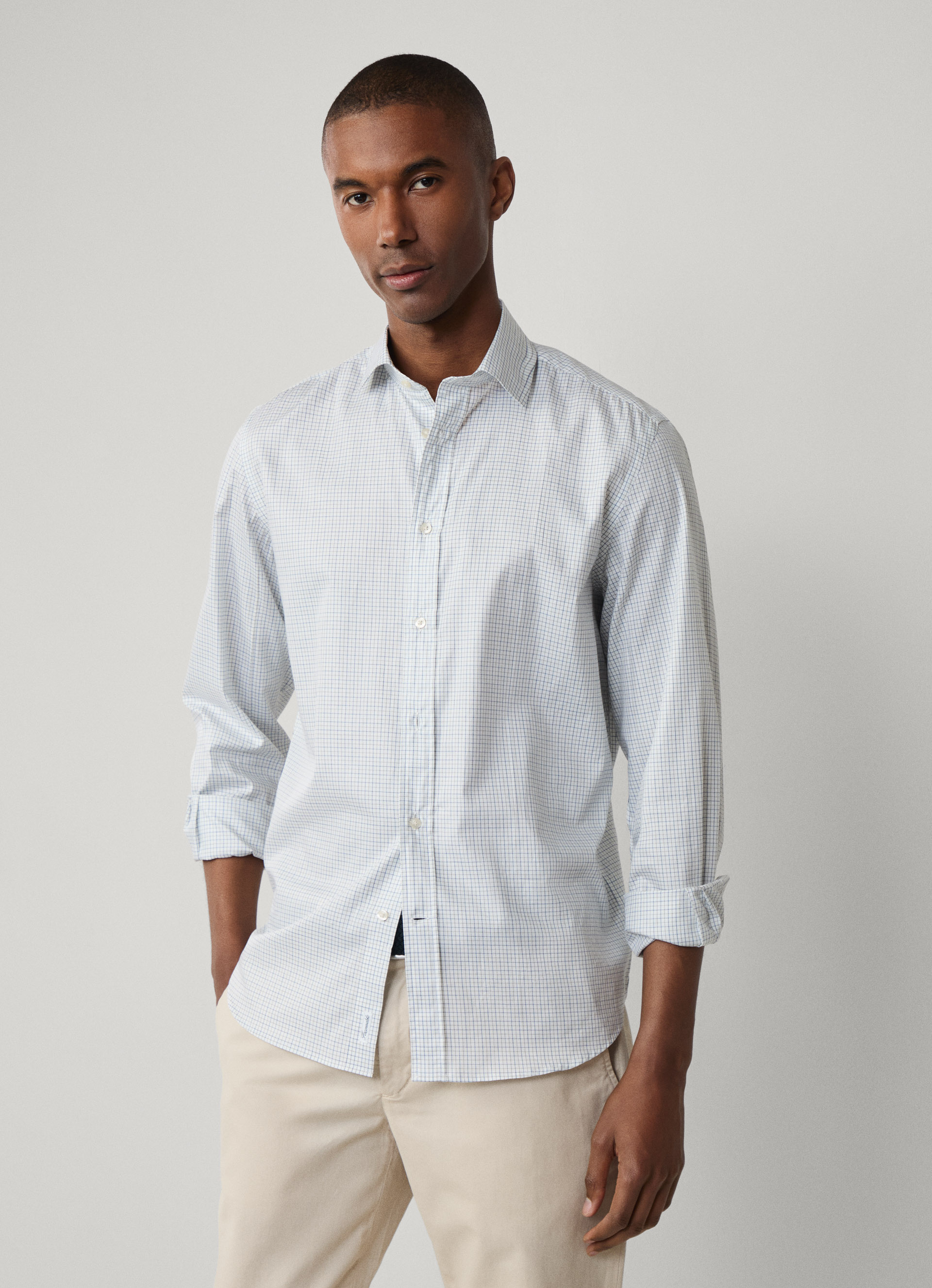 regular fit windowpane twill shirt